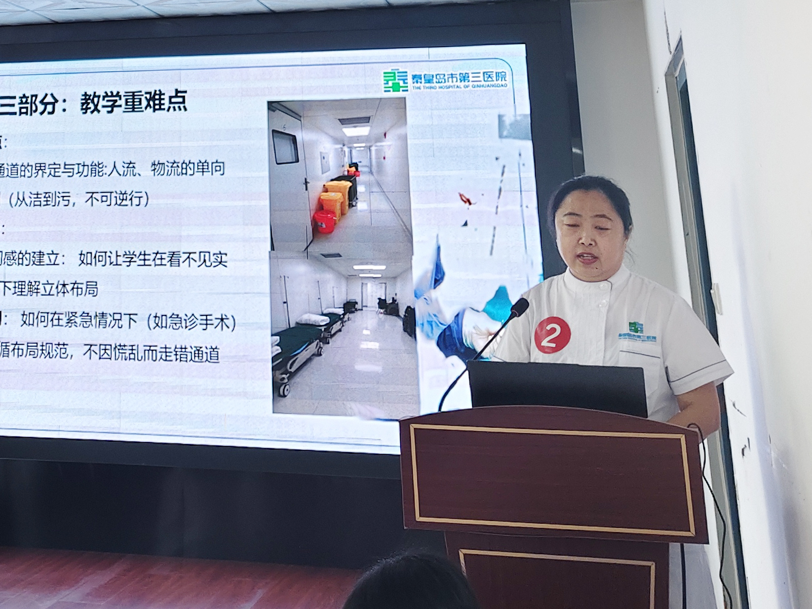 随后,护理部负责人周丹发表讲话,详细阐述了本次赛事的举办初衷与核心目标。护理部立足我院护理实习带教工作实际,聚焦带教规范化、专业化、精细化发展需求,精心筹备此次说课比赛,旨在为全院护理带教老师搭建展示风采、交流互鉴、共同提升的专业平台,进一步强化全体带教老师的责任意识,规范带教流程,创新带教方法,破解临床带教中的实际难题,全面补齐护理教学短板。后续将以此次赛事为契机,总结赛事经验,梳理教学成果,持续强化师资培养,完善教学督导机制,为培养高素质、专业化护理人才提供全方位保障。