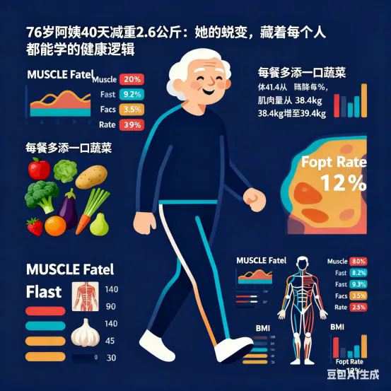 这份成绩单最动人的,从不是数字的变化,而是76岁高龄背后“主动管理健康”的态度。很多人总觉得“年纪大了不用折腾”“减重是年轻人的事”,但阿姨用行动证明:健康没有“过期日”,只要开始并坚持,身体就会给出正向反馈。