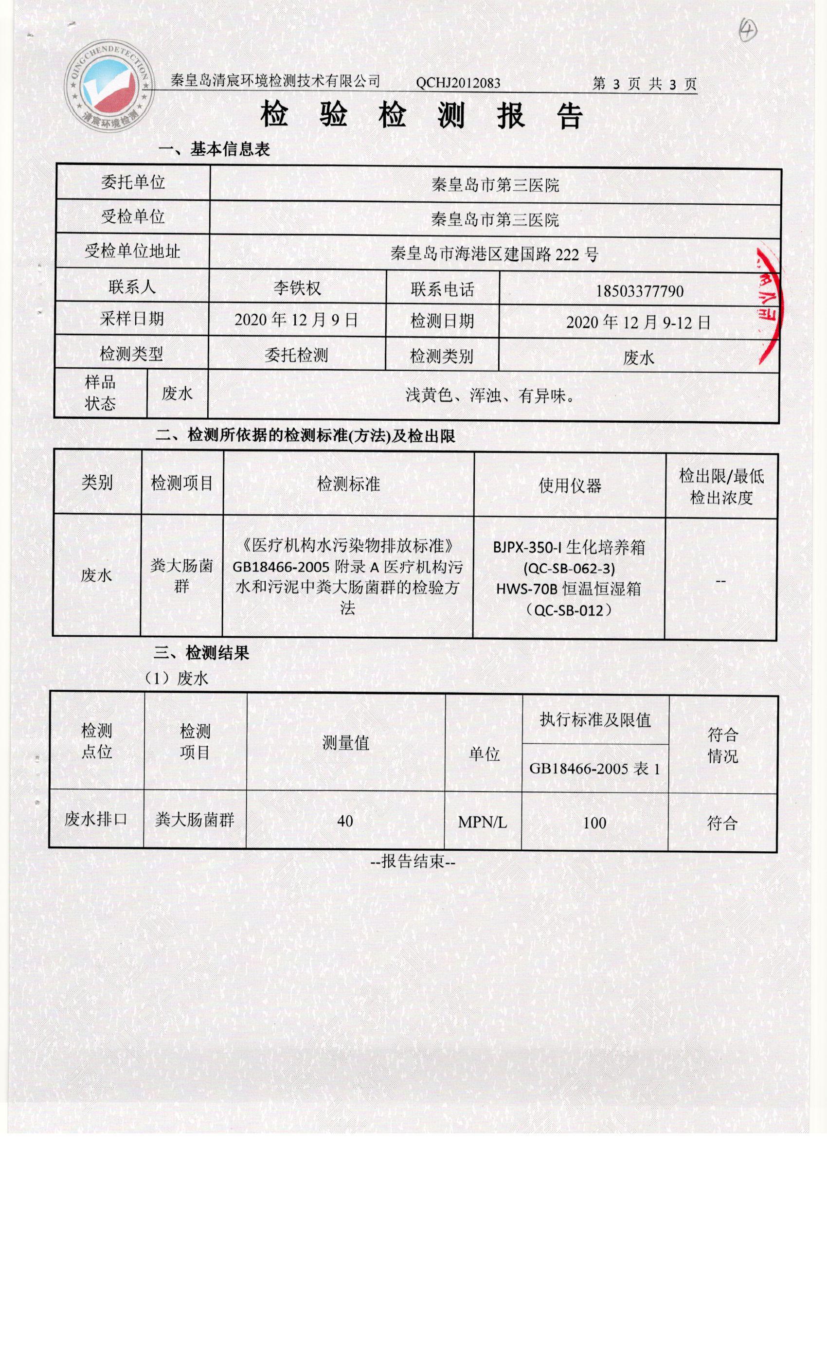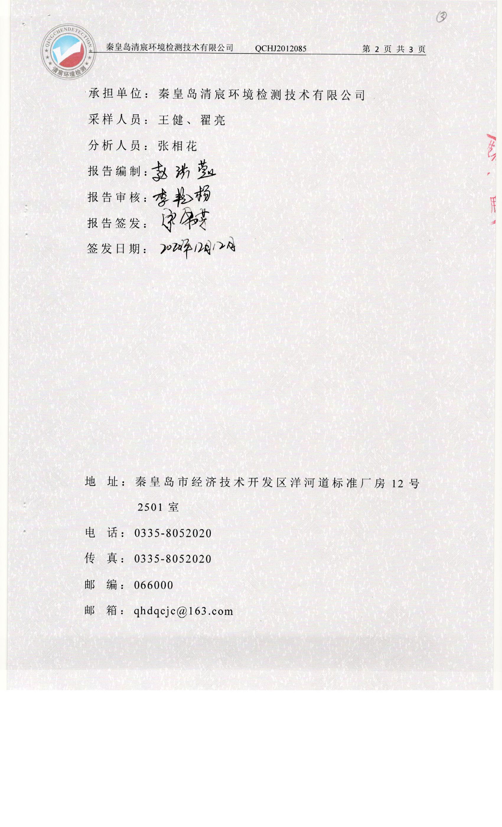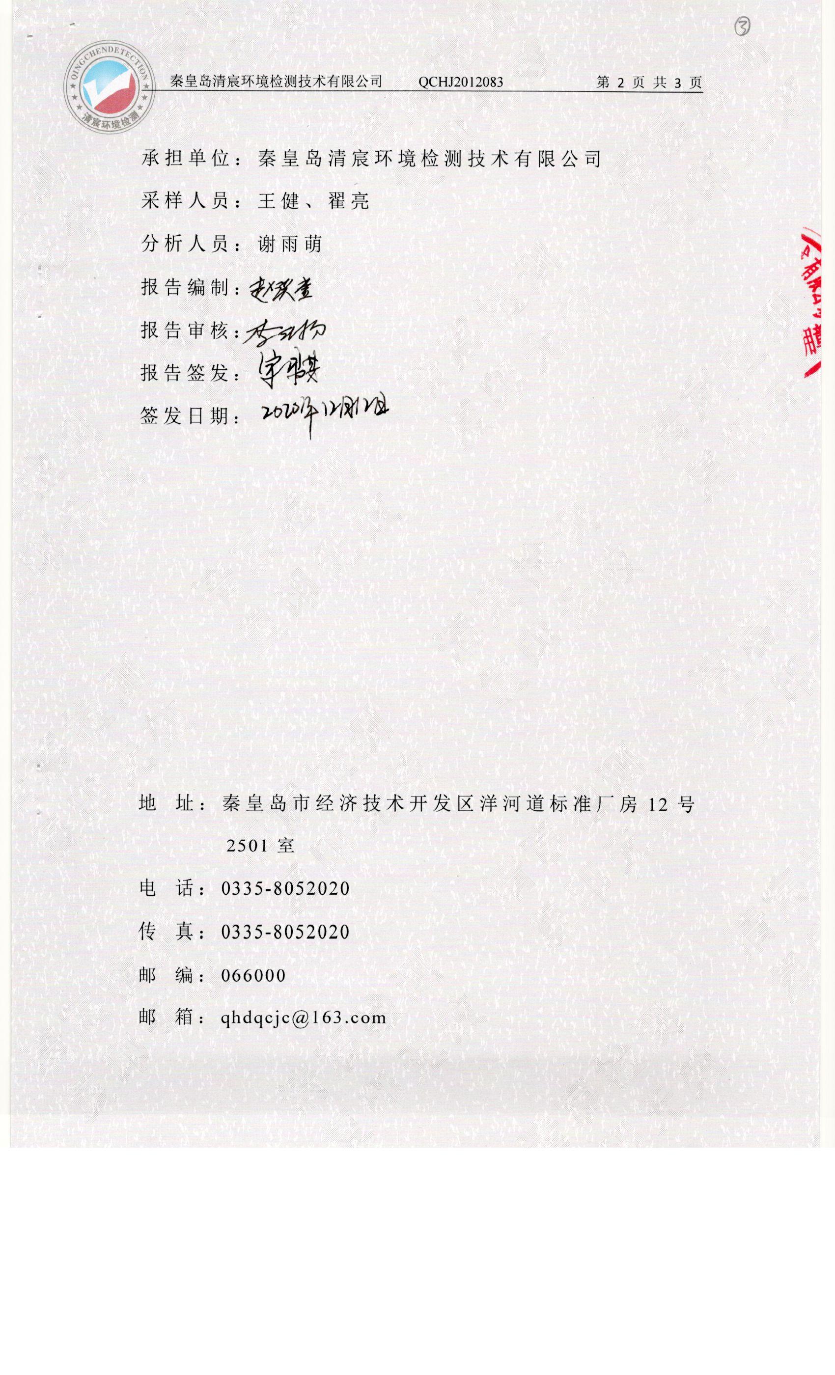2020年第四季度废水、废气、噪声检测公示内容如下:
