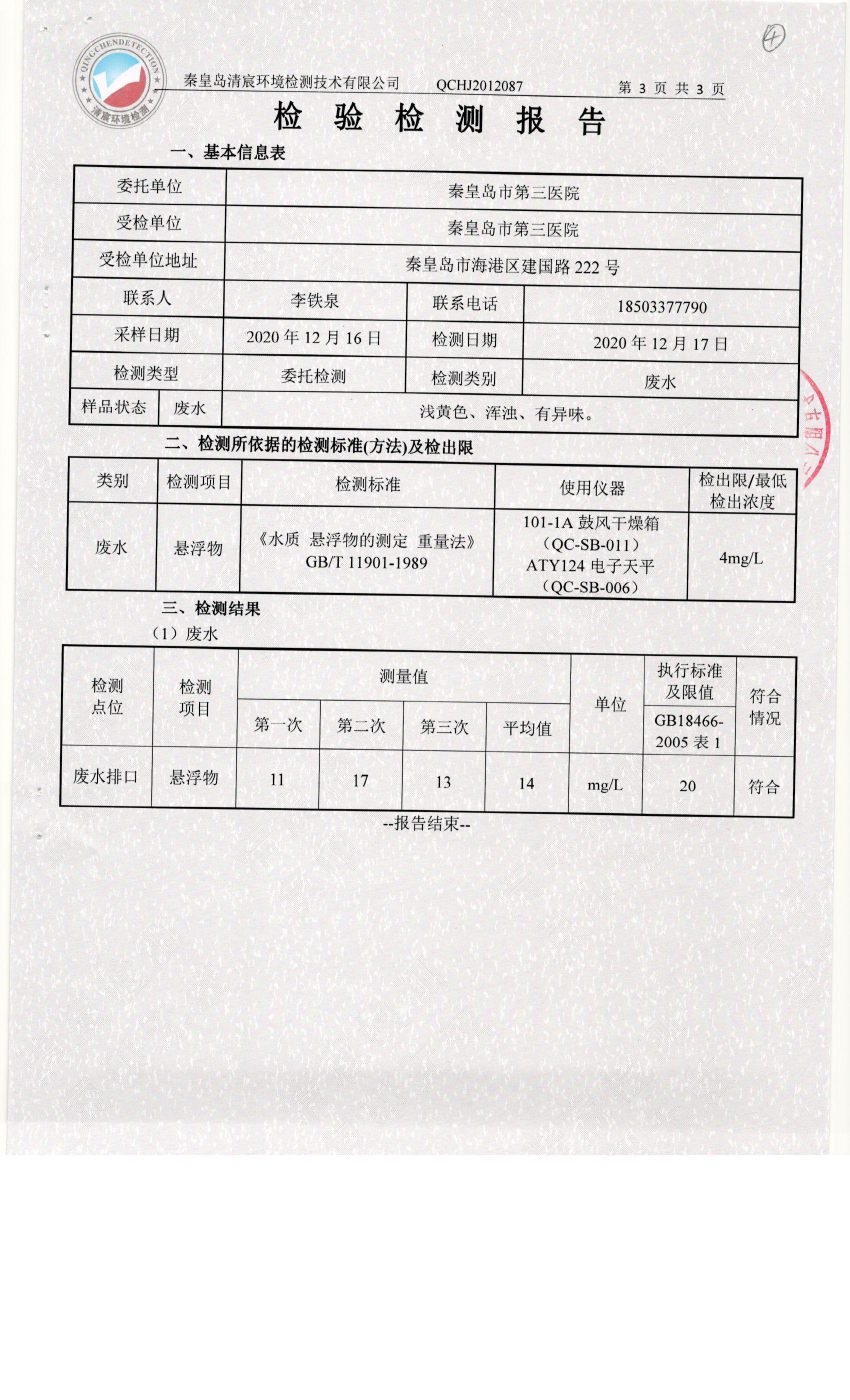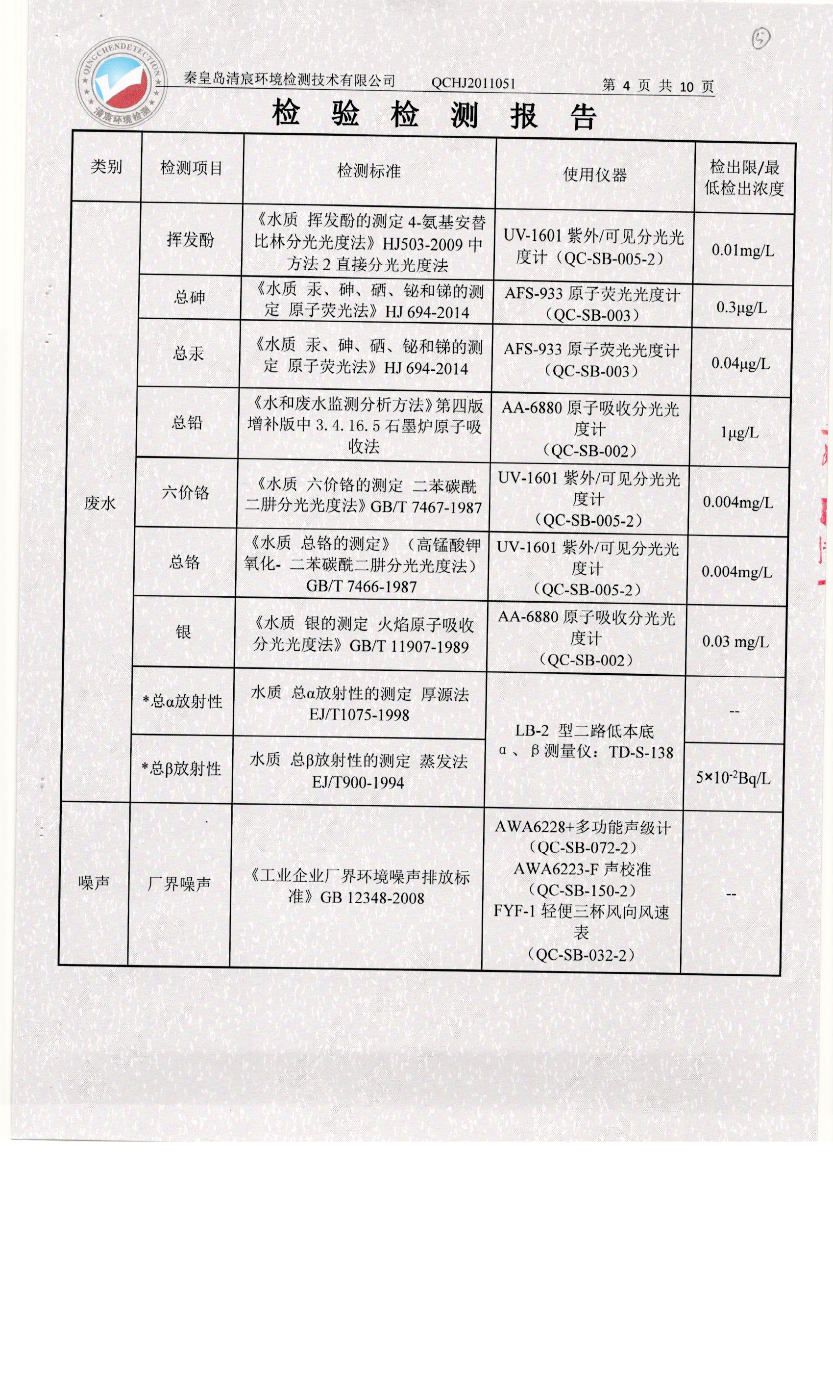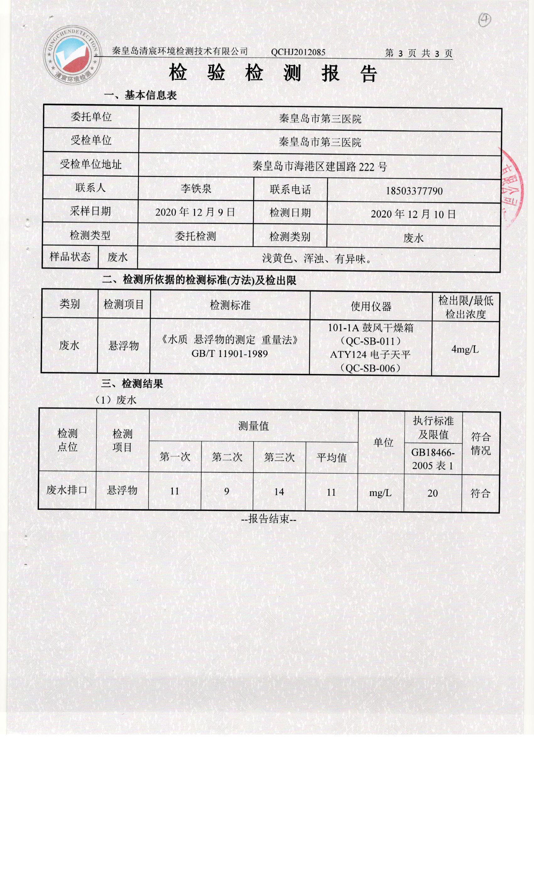 2020年第四季度废水、废气、噪声检测公示内容如下: