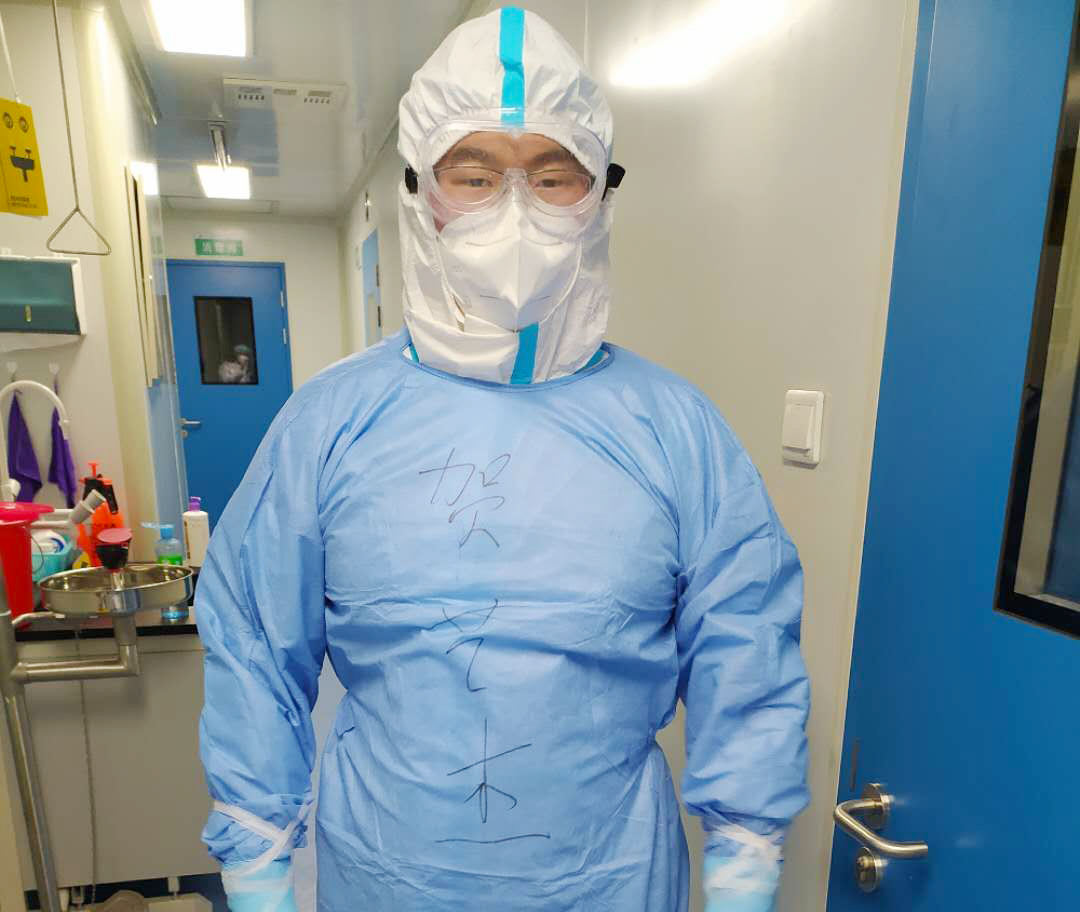 为了帮助博湖县如期完成目标任务,彻底打赢疫情防控保卫战,贺艺杰每天早晨六点就穿上厚厚的防护装备进入实验室开展核酸检测工作,标本量大时一次工作就会持续到凌晨一点多才结束。所有队员基本上一天要进入实验室两次,每次工作六小时以上不吃不喝,从实验室走出后衣服都能拧出水来,是一次又一次的挑战身体极限。工作的同时,还帮助博湖县医院提升院感预防和控制能力,对当地实验室人员进行点对点帮扶,实验技术现场演示带教。在遥远的新疆交出了一份合格的答卷。