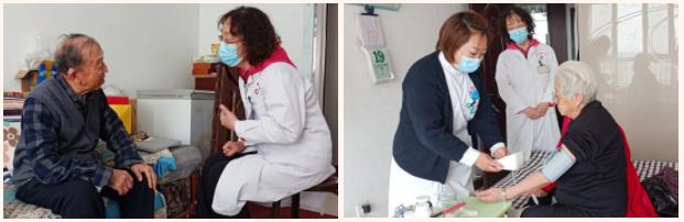 郭秋君主任和闫华护士还进行了入户走访,为2名86岁高龄慢病老人测量血压,指导其合理用药、疾病保健等健康服务。