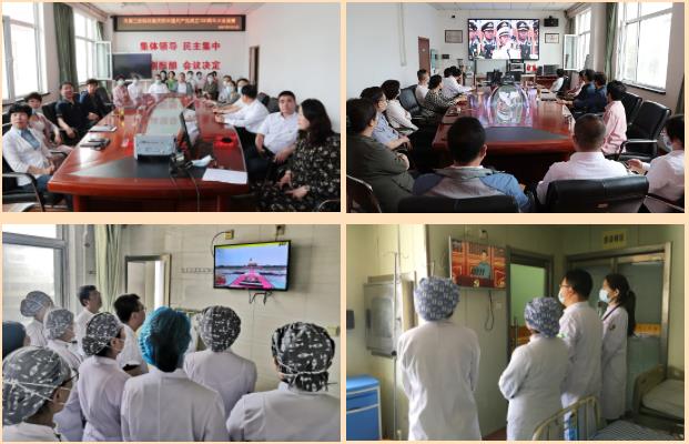 上午7:50分,医院领导班子全体成员、各党总支书记、副书记、委员及党员代表在多媒体会议室收看大会直播,各党支部、各科室党员干部职工在科室组织收看并学习。