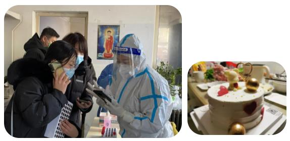 “2月14日情人节,一大早就定了蛋糕,期待了一天的节日。下午快下班接到了全民核酸的任务,来不及多想,便立即进入作战状态。八个足足能装下半个我的转运箱,我们几个护士姐妹硬是举上了货车!这一忙竟忘了时间,等这一切准备就绪已经是凌晨三点,才发现自己连晚饭都没来得及吃,家里的电话也没空回一个……第二天早上买了十个包子十个鸡蛋当早饭,而大家怕上厕所,却都没吃,一心想着赶紧把任务完成。我们负责红光北里片区八个点位的采样任务,风很冷,但每个采样人都是心往一处想,劲往一处使,等所有工作结束后,我看到他们在啃着早上的包子和茶蛋,瞬间我的眼眶就湿了,别过头说:你们热一热在吃!大家都很兴奋的讨论着今天发生的事情,虽然身体疲惫,但那一刻,我能感觉出来,大家是自豪的、骄傲的,我们是最棒的!回到家来不及洗漱就在沙发上睡着了,连最爱吃的元宵都没顾上吃一个……都说十五的月亮十六圆,但今年的蛋糕和元宵格外甜!”