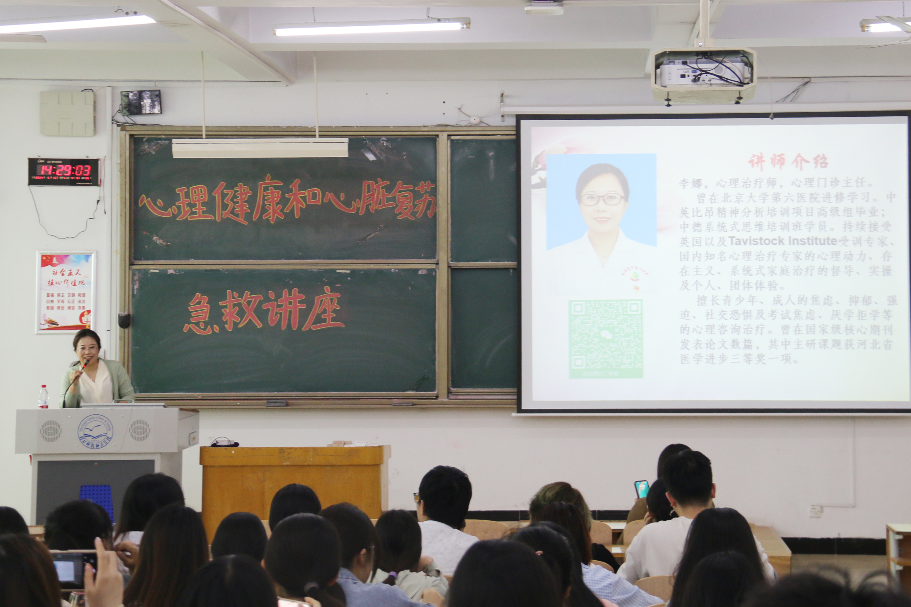讲座现场,市第三医院心理门诊主任李娜为学生们做了心理健康讲座,通过深入浅出、幽默风趣的讲解,引导学生们重视自身心理健康。急诊科主任助理刘宇薇进行了心肺复苏、海姆立克法等急救知识讲座,讲座实用性强、趣味性强,现场气氛热烈,学生们积极互动、受益匪浅。