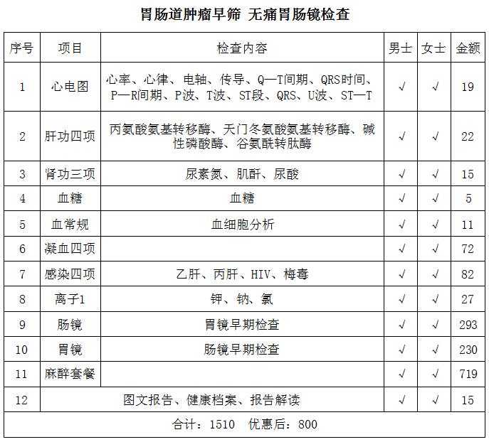 胃肠道肿瘤筛查:通过胃镜+肠镜联合检查,直观发现胃肠黏膜病变,40岁以上、饮食不规律或有胃肠癌家族史者必查;