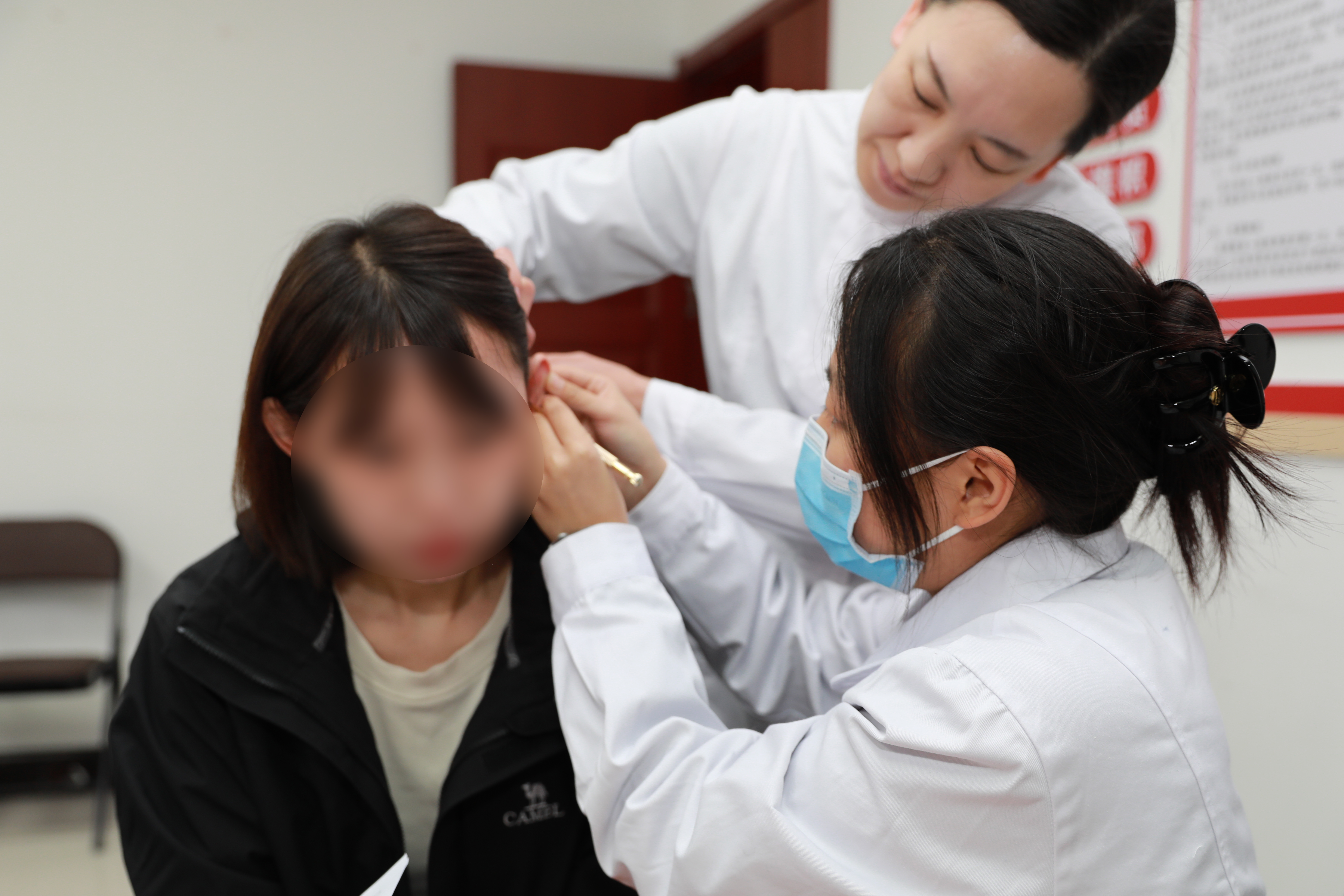中医特色护理体验区前人气高涨,肺病一、四科护士长晏海玲和中医护理门诊护士运用耳穴贴压这一传统中医疗法,针对失眠、高血压、头晕头痛、消化不良等中老年常见问题,为居民提供现场调理与个性化指导。指尖的专业操作搭配细致的养生讲解,让居民真切感受到传统中医的独特魅力与实用价值。