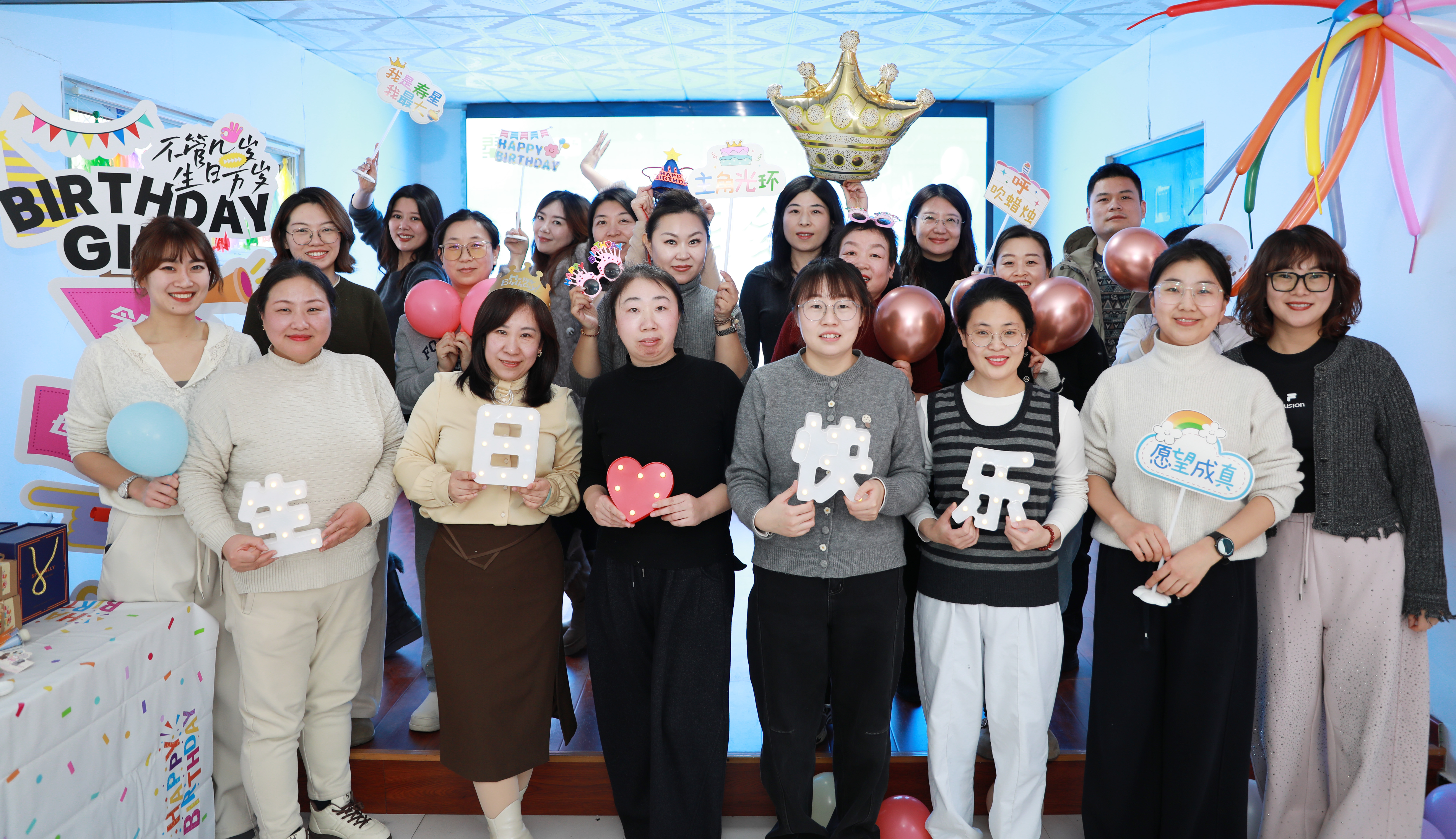 最后,参加活动的全体人员手持祝福手牌、挥舞气球合影留念,定格下这温馨美好的瞬间。这场简短而真挚的生日会,不仅是一次生辰庆典,更是一次情感的凝聚。未来,这份温暖将化作前行的动力,让三院人在守护健康的道路上,始终被爱与温情相伴,携手共赴新程。