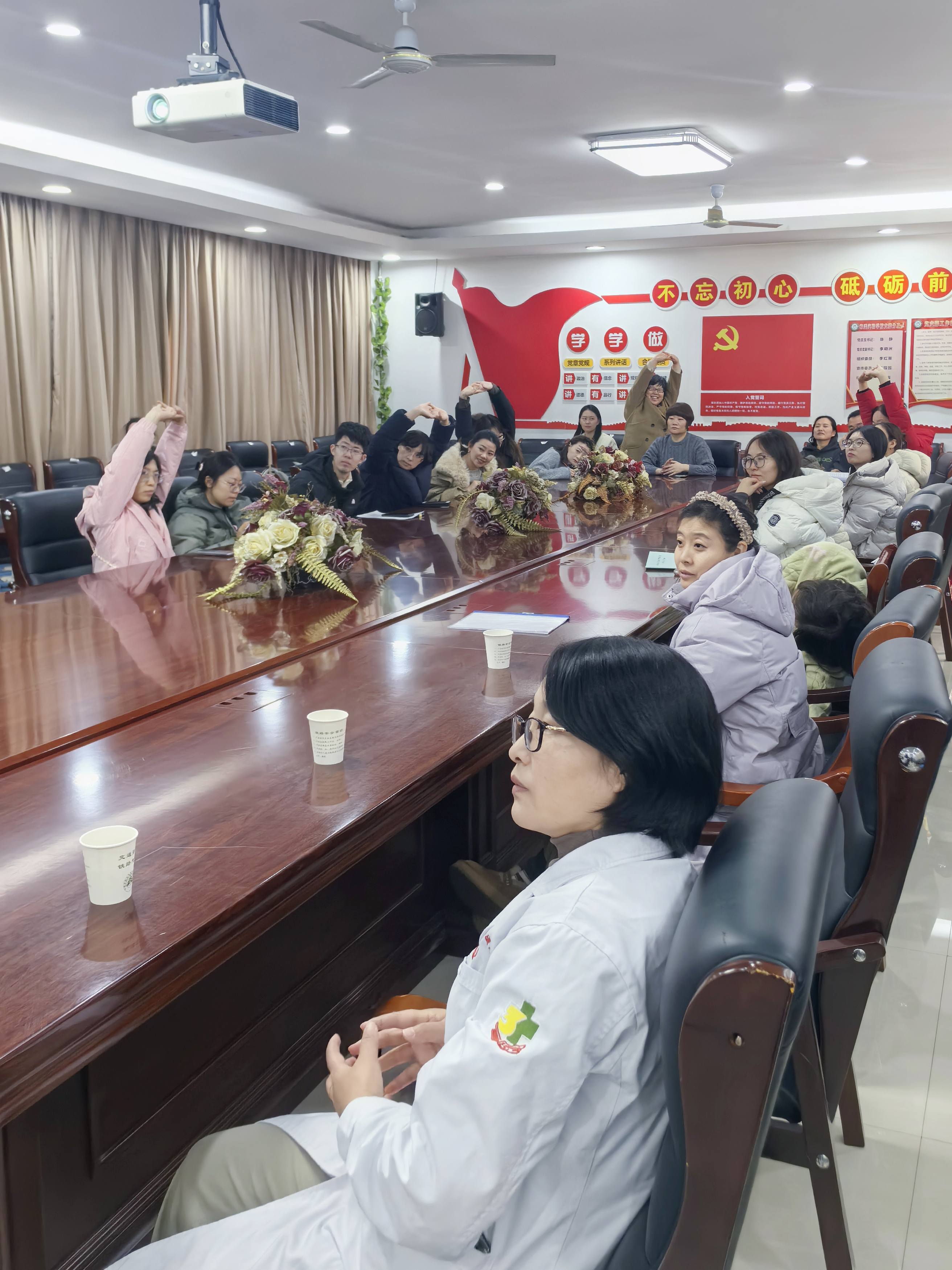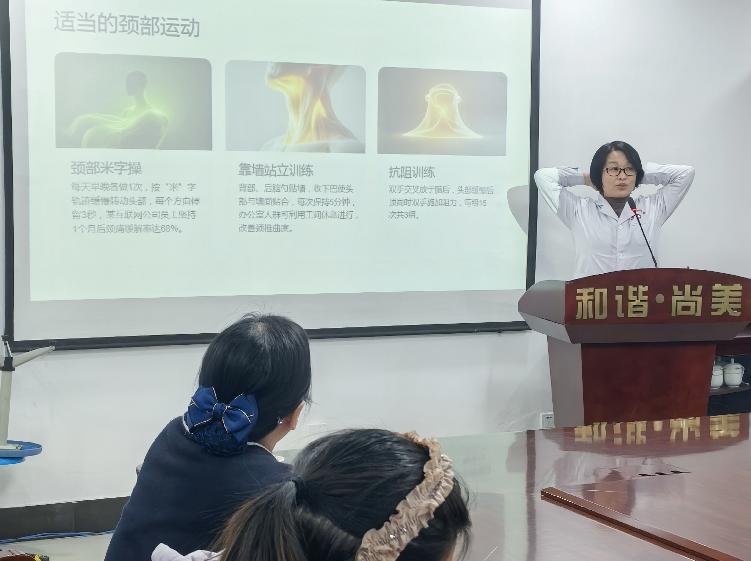 疼痛康复科李海芳主任聚焦当下高发的颈椎病问题,同步开展“颈椎病的预防与治疗”专题科普。她结合临床常见病例,详细讲解颈椎病的发病原因、常见症状、危害以及日常预防措施,针对不同人群的颈椎养护需求,给出个性化的锻炼建议和生活指导,重点演示了适合办公族、老年人的颈椎放松动作。现场教师群体认真聆听、积极互动,纷纷举手咨询自身颈椎不适相关问题,李海芳主任逐一耐心解答,结合每个人的具体情况给出针对性诊疗建议,得到了老师们的一致认可。