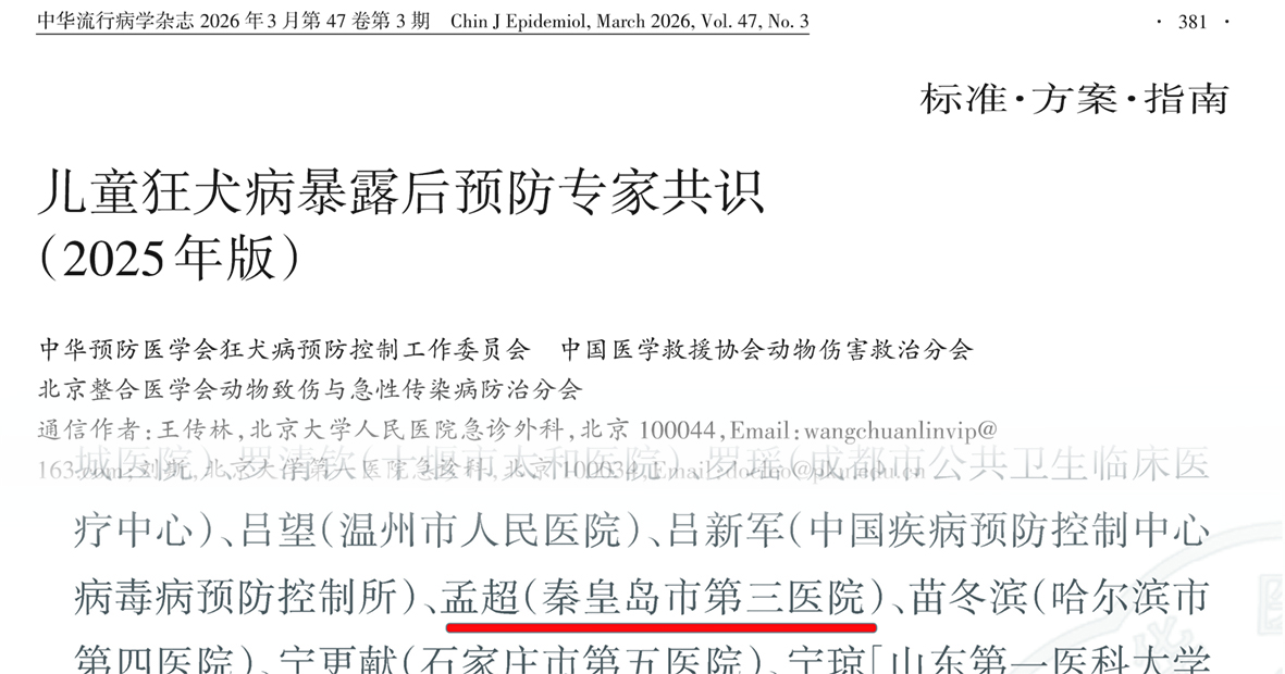 从临床救治到参编国家级共识,从单点服务到全域防控支撑,秦皇岛市第三医院以责任与专业践行医者使命。未来,医院将继续以《儿童狂犬病暴露后预防专家共识(2025版)》为指引,深化规范诊疗、强化应急保障、拓展科普覆盖,用更安全、更高效、更温暖的医疗服务,守护港城儿童健康与全市人民生命安全,书写公共卫生守护的新答卷。